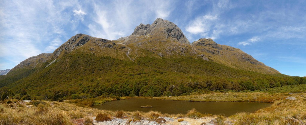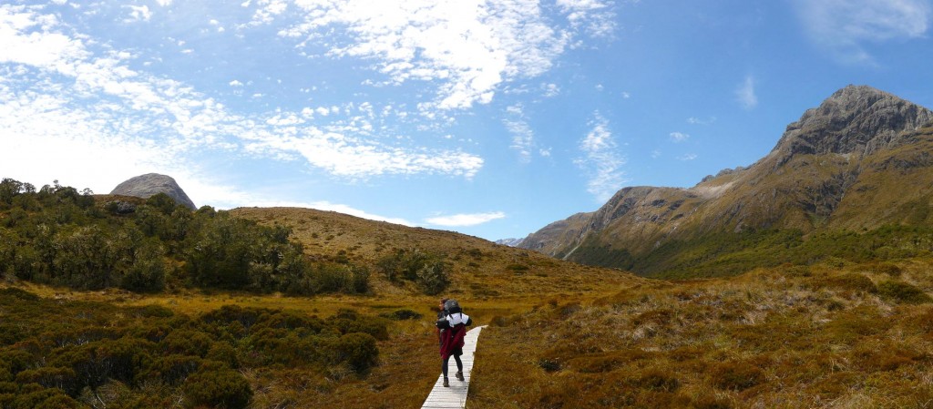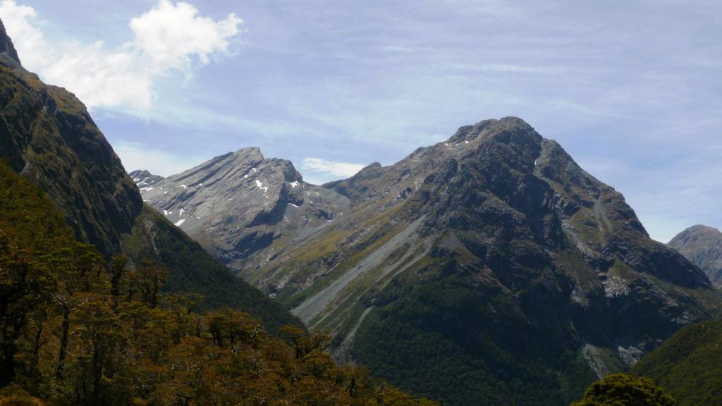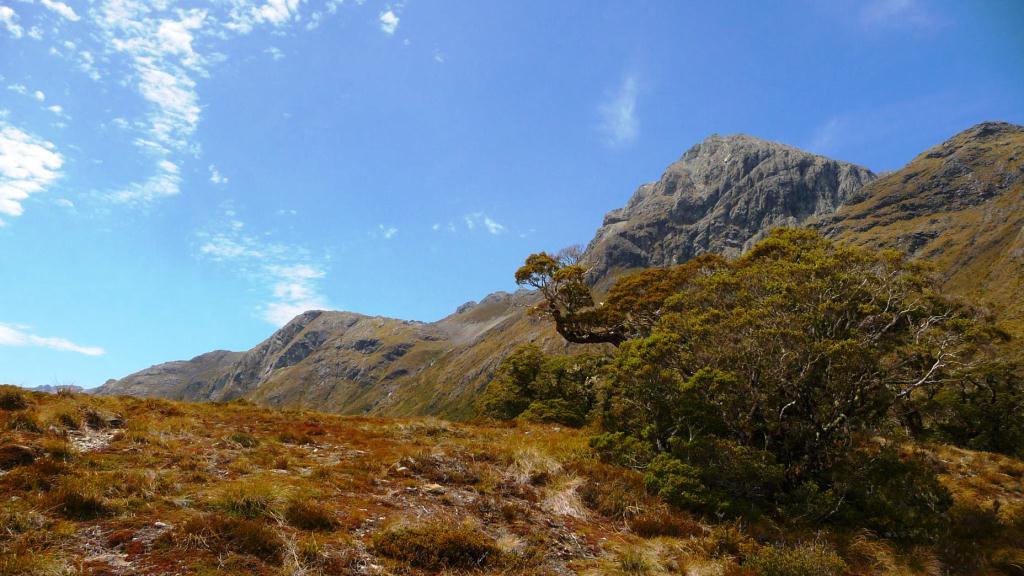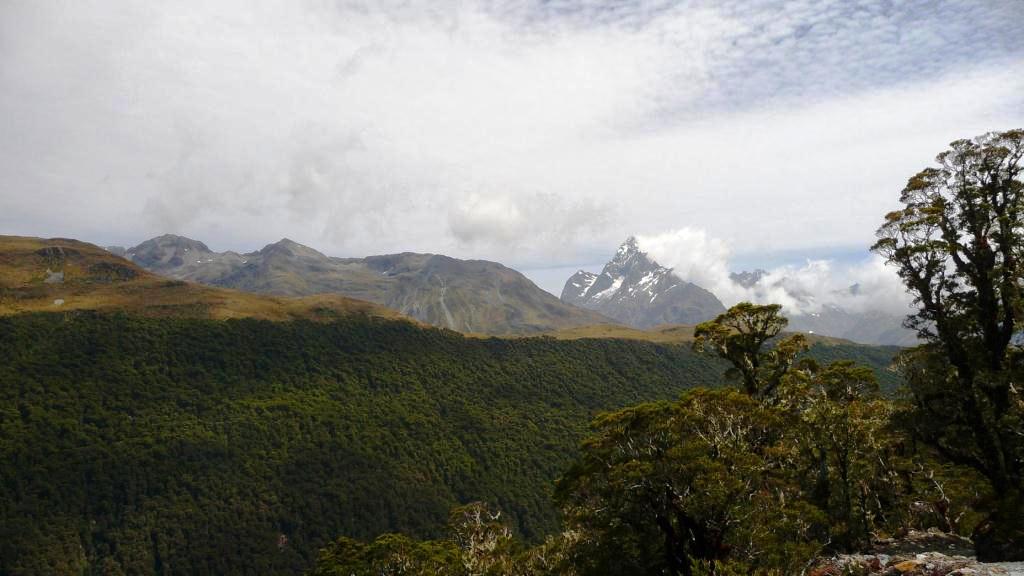 But the climb up wasn’t half as bad as expected. The Department of Conservation here has spend $500,000NZD over the last few months upgrading the track significantly in this section, changing it from a dreadful, near mountain climb, to a fairly easy track full of switchbacks. To give you an idea, the ascent from valley to saddle now is 2.4km of track – the same ascent was accomplished over just 500 meters of track before. So MUCH easier gradient now. The views towards the top were great. I loved the sharp mountain peak that appeared to be billowing clouds.