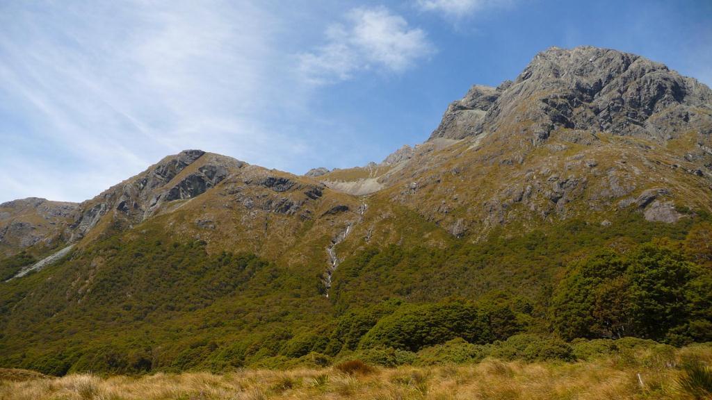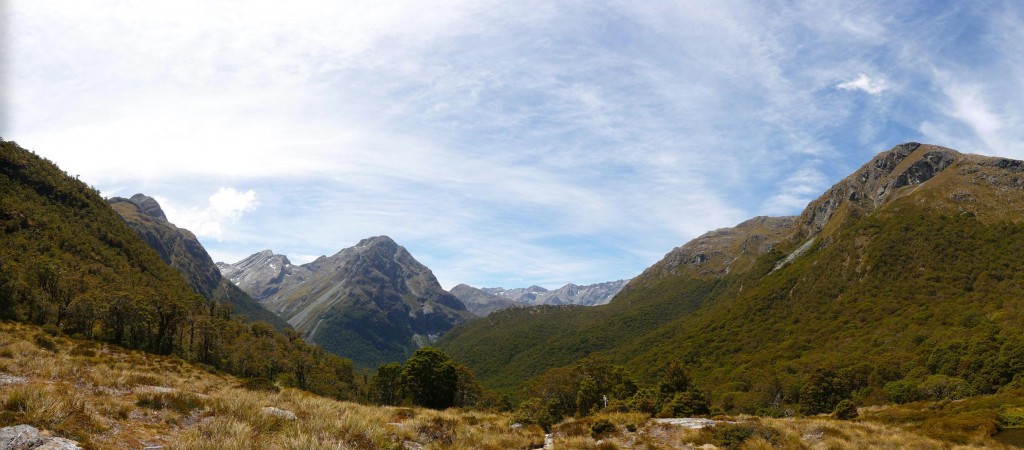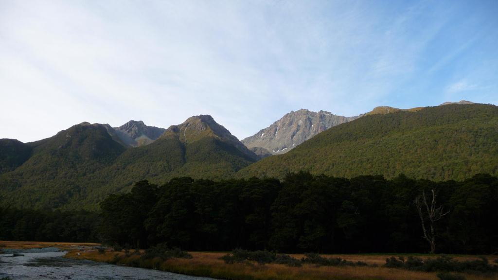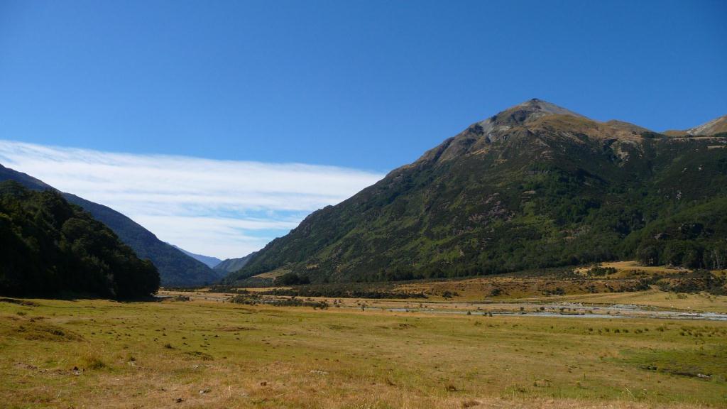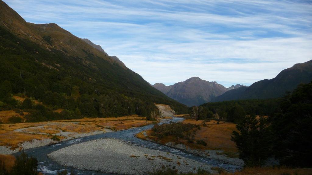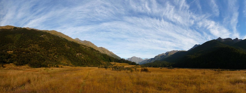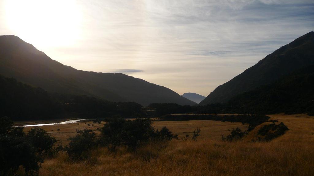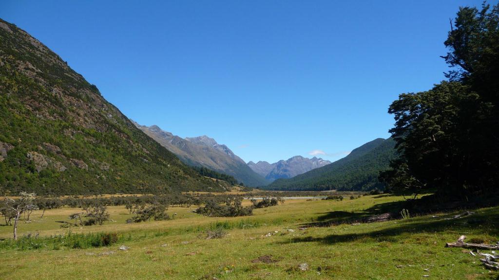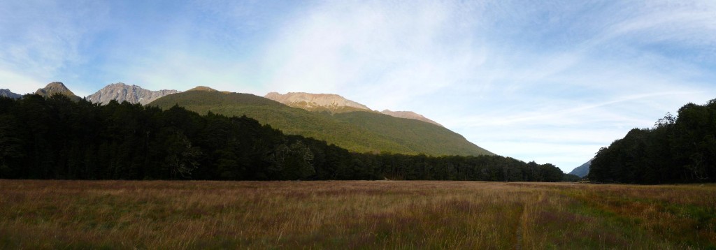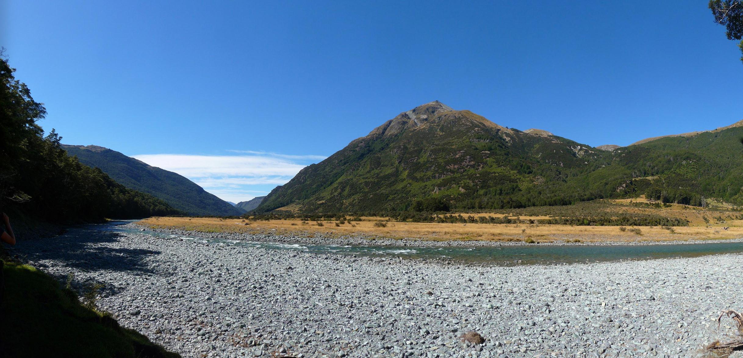 The pyramid peak on the right hand side would be the ultimate end destination the next day – at the bottom of that peak, the Caples and Greenstone rivers meet, and the circuit would be complete.
