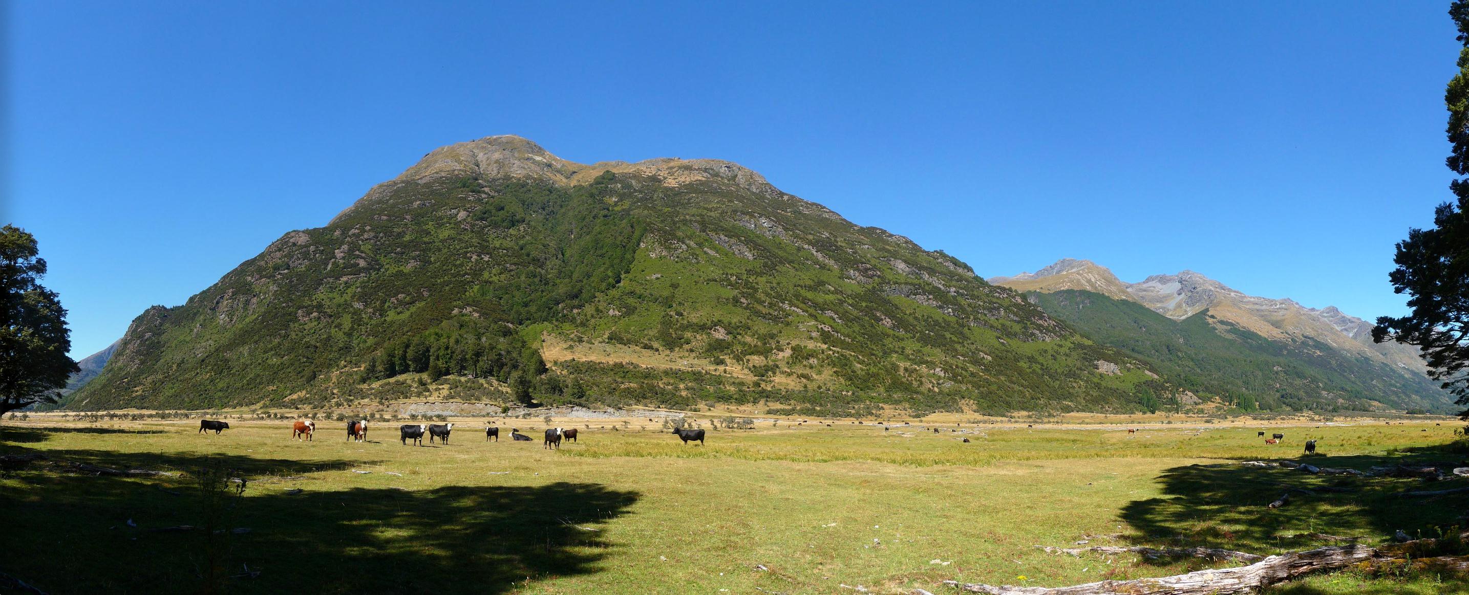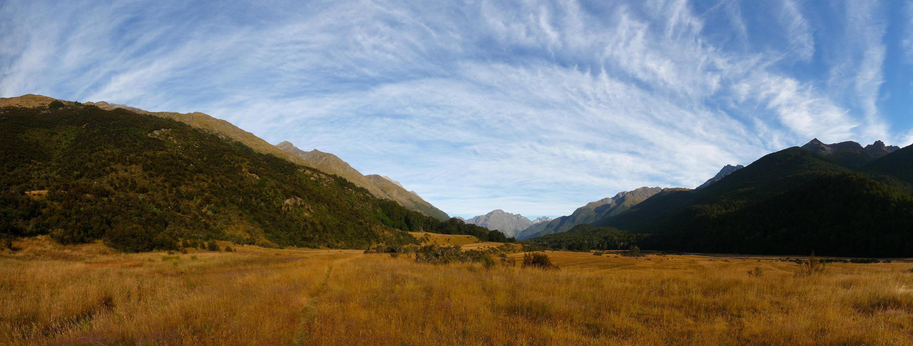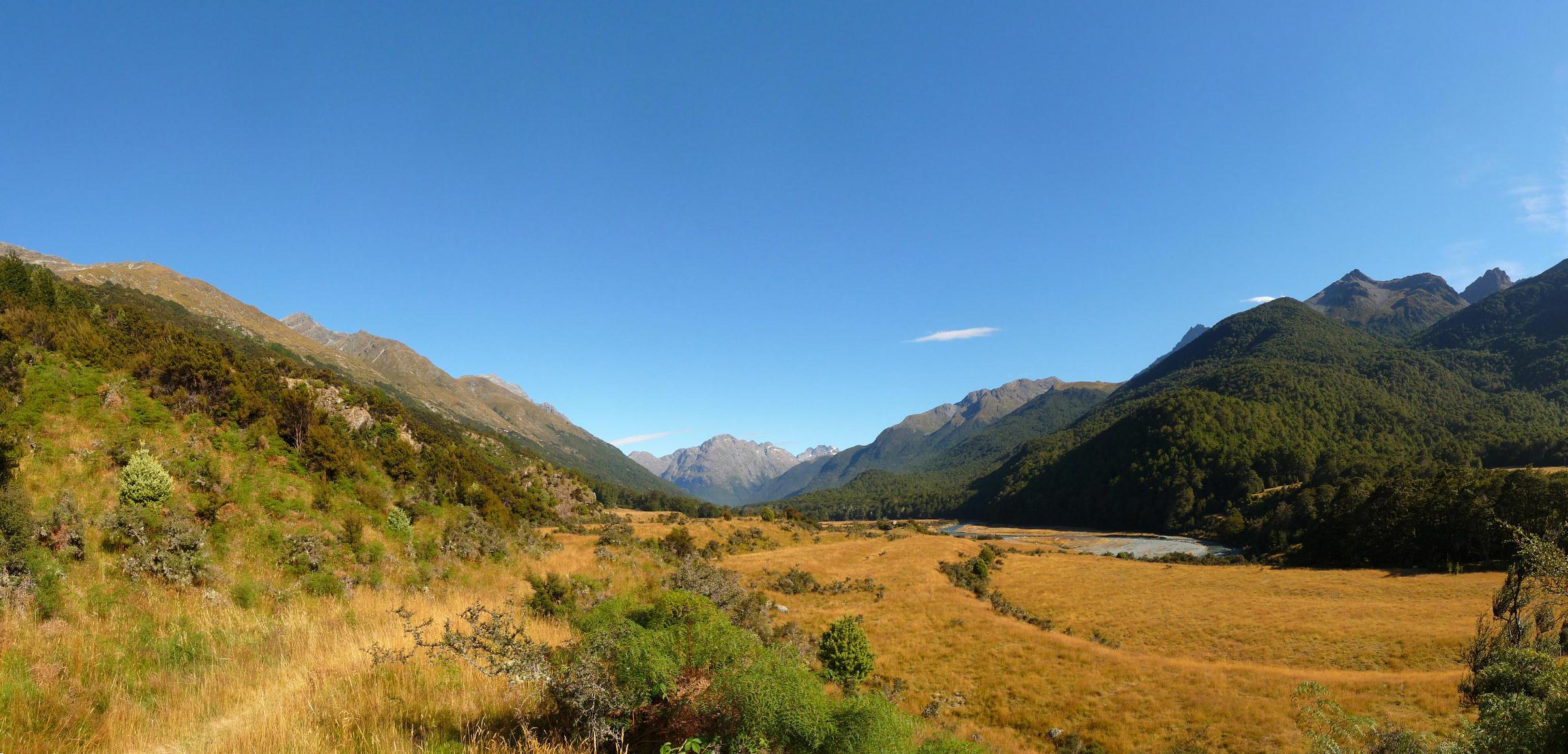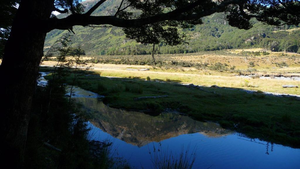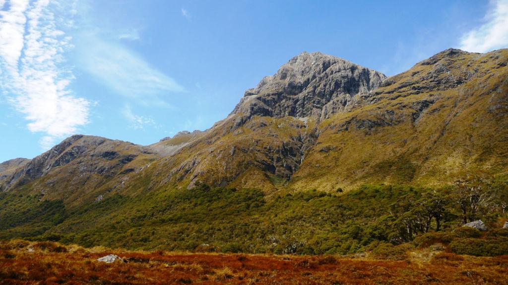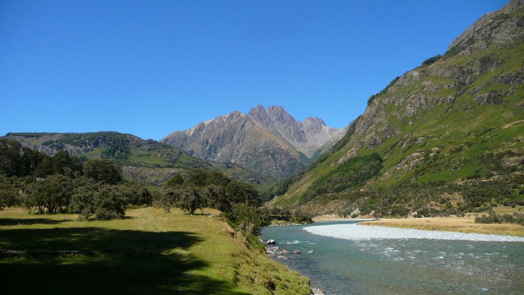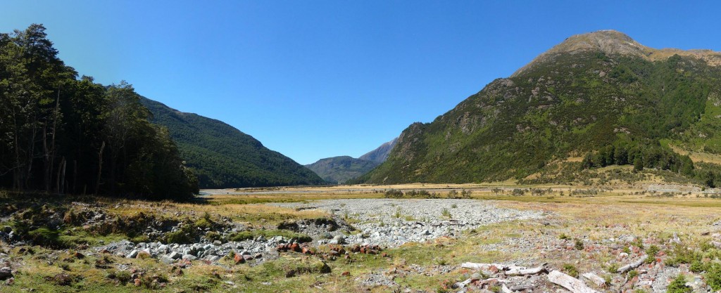The pyramid peak on the right hand side would be the ultimate end destination the next day – at the bottom of that peak, the Caples and Greenstone rivers meet, and the circuit would be complete.