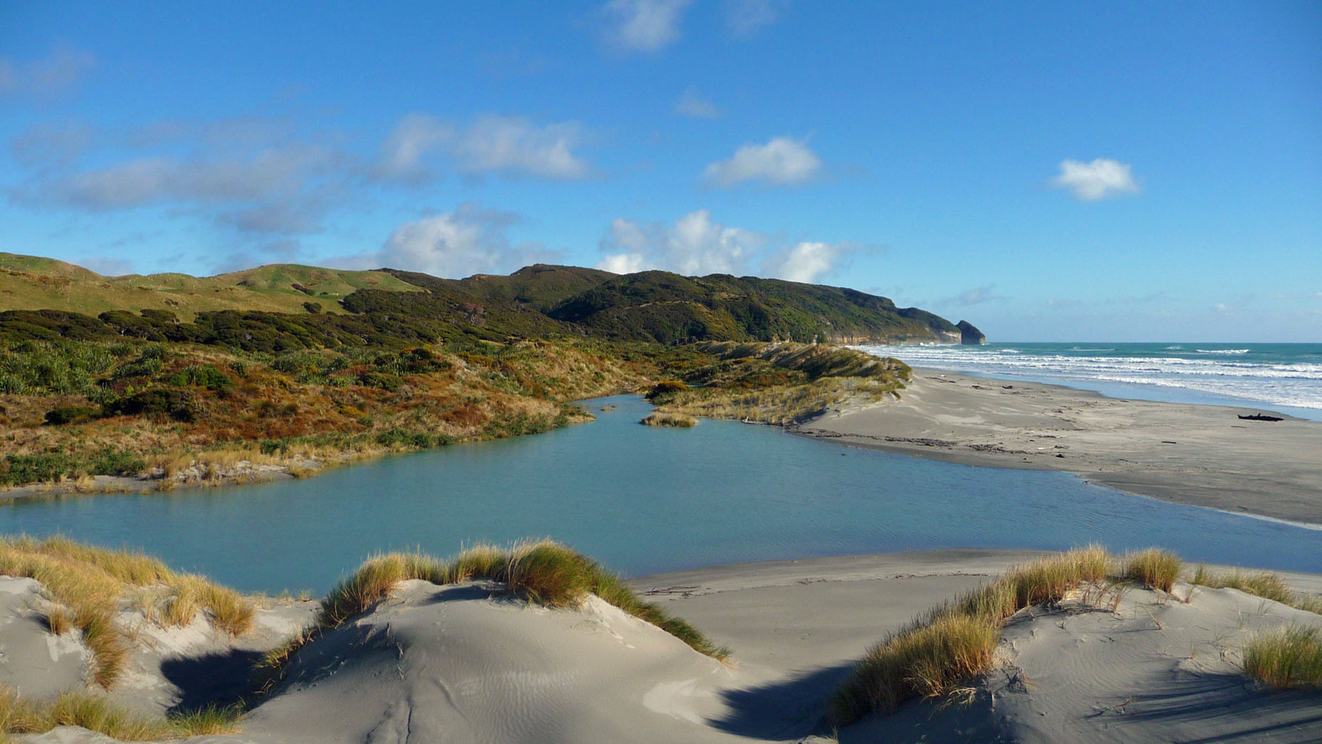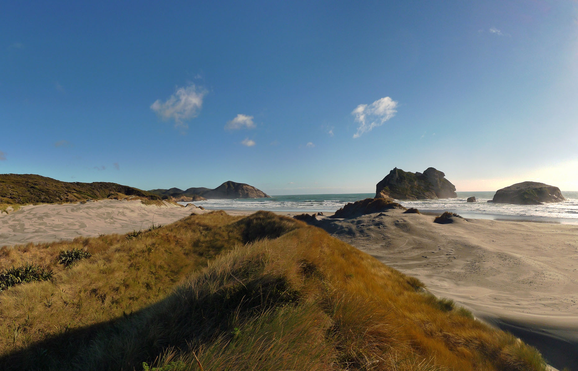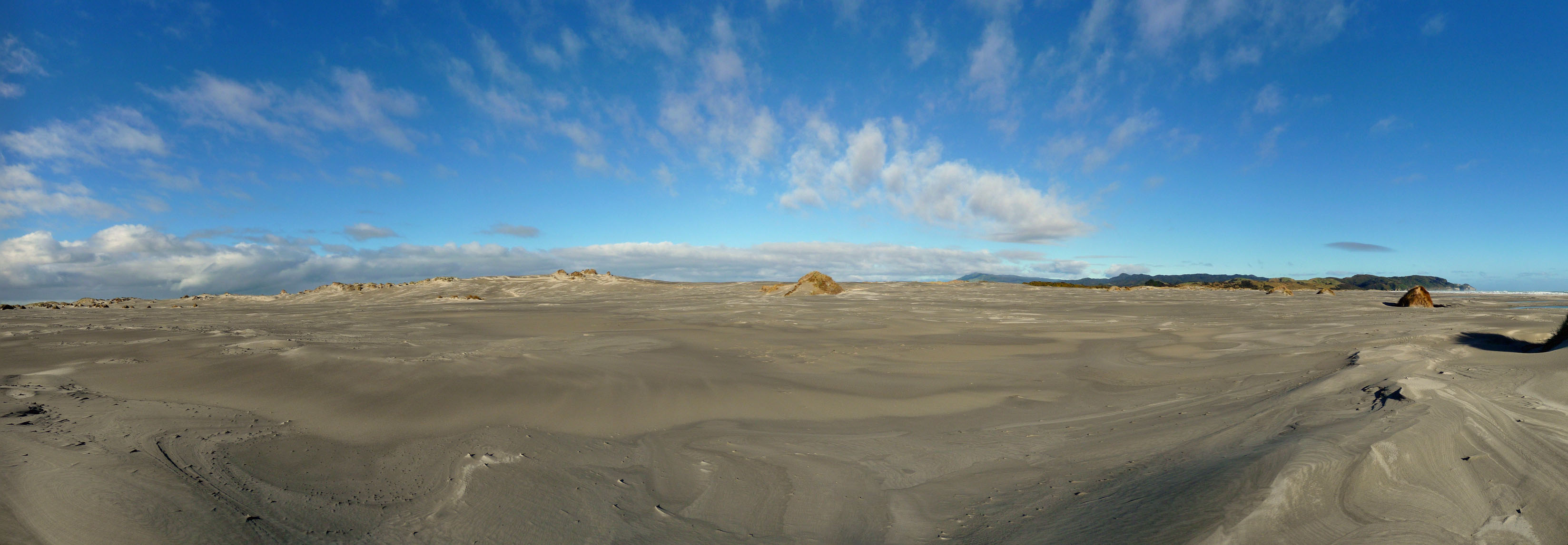 Farewell Spit is the largest sand spit in New Zealand, clocking in around 27 kilometers long, and probably about a kilometer wide. And tons of sand means sand dunes!