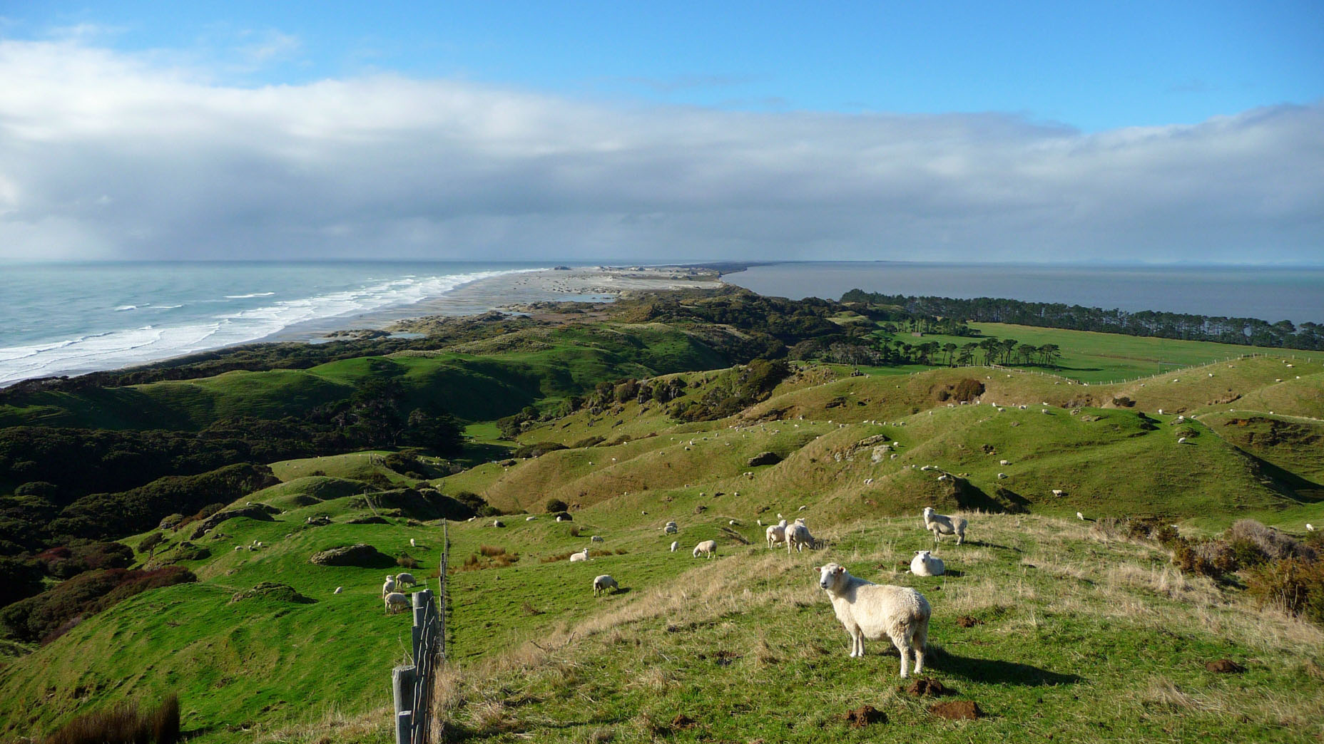 But I was finished with my time on the spit. I crossed over some lush farmland and looked back down towards Farewell Spit.