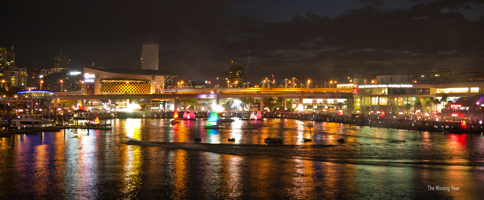 I got to the Harbour just after the sun went down and wandered around. Per a suggestion from a certain lovely local, I ended up on the Pyrmont Bridge overlooking the inner Darling Harbour and giving me a great view of the fireworks. As a bonus, the bridge was a quieter spot.
